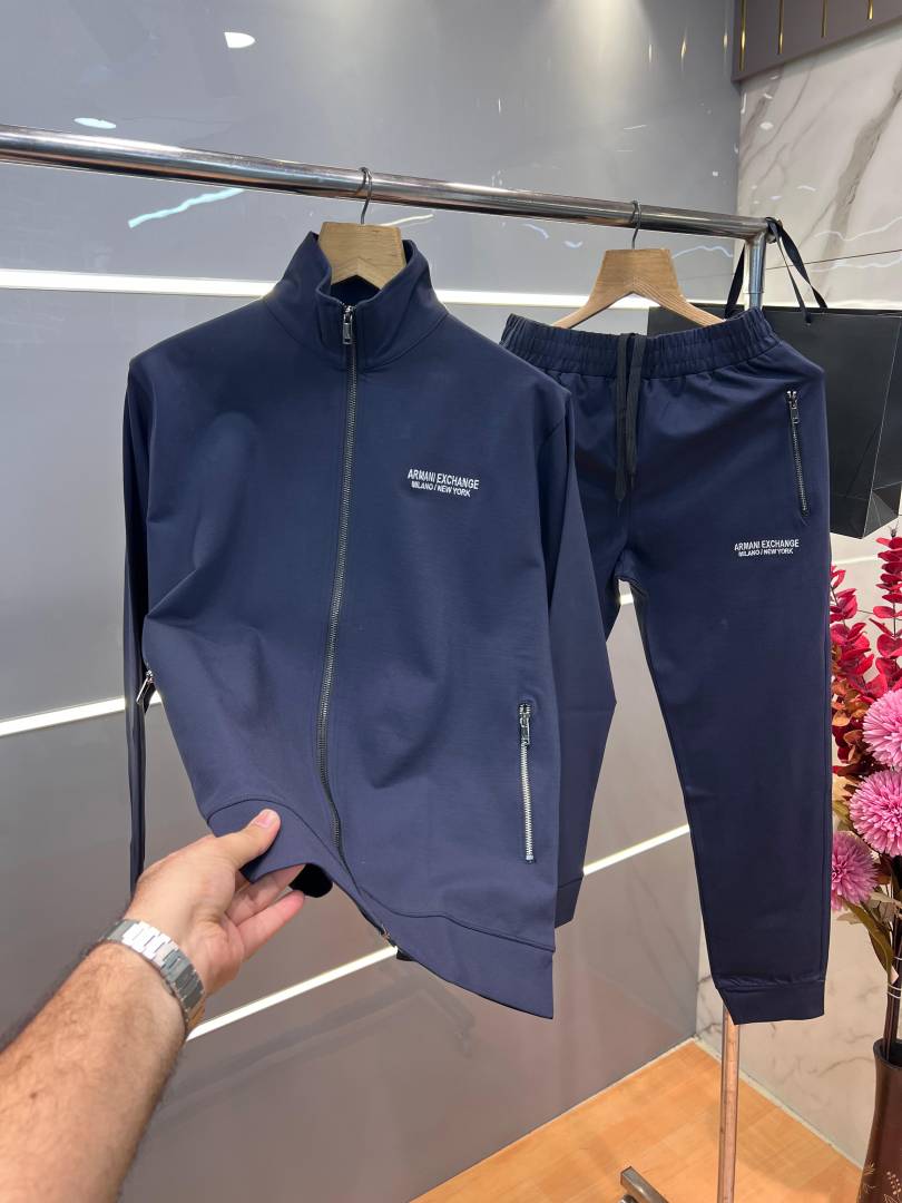Arman i Exchange Navy Premium Imported Fabric Emboss Logo Zipper style Tracksuit 3583