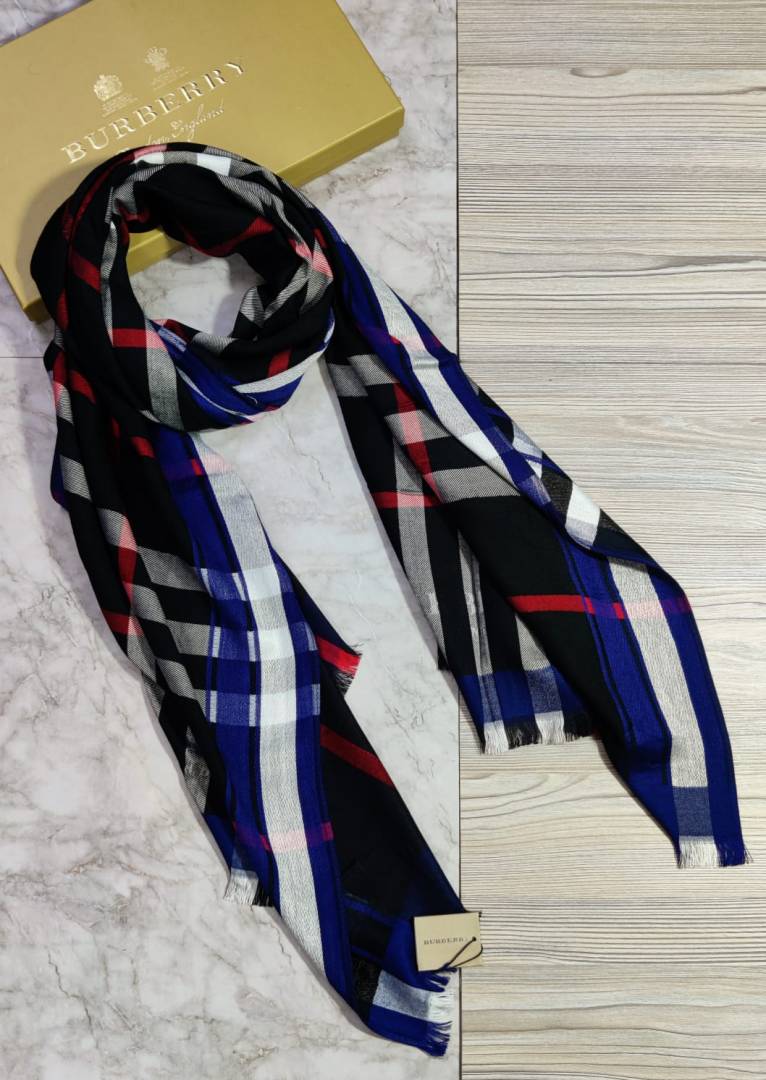 Burberry_Multicolor_Blue_Black_Red_Check_Luxury_Cotton_Pashmina_Scarf_With_Polythene