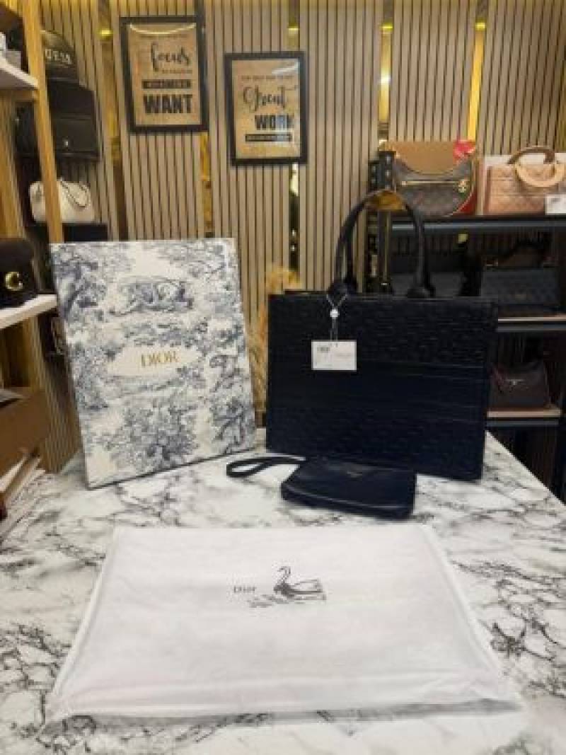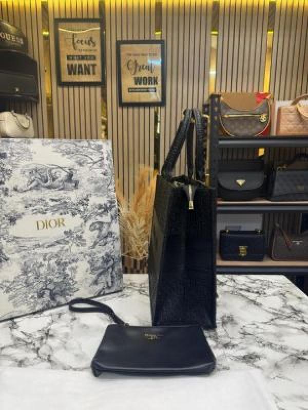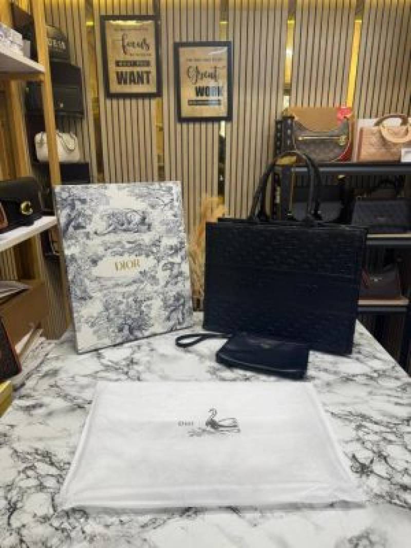 Christian_Dior_Book_Tote_With_Matching_Wallet_Embossed_Calfskin_With_Box_And_Dust_Bag_(Black)