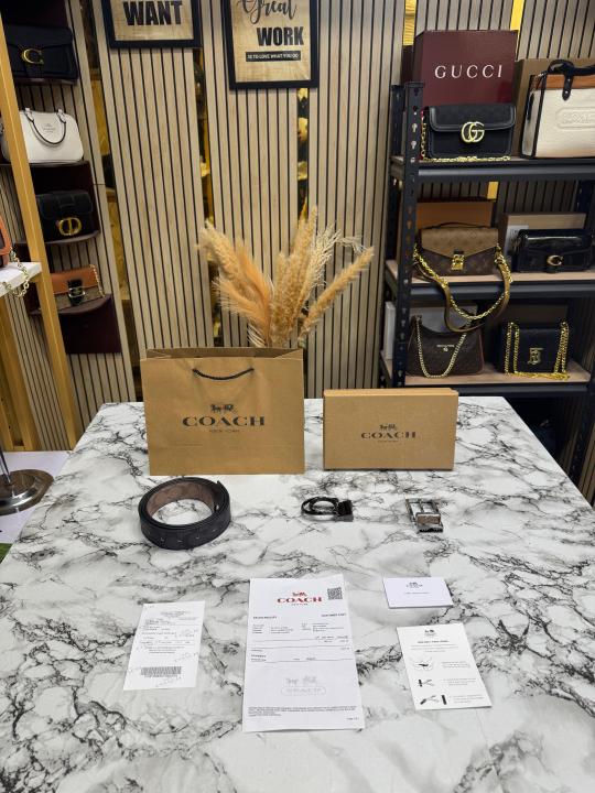 Coac_h Reversible Monogram Signature Belt with Two Buckles Box Dust Bag and Carry Bag (10-CO)
