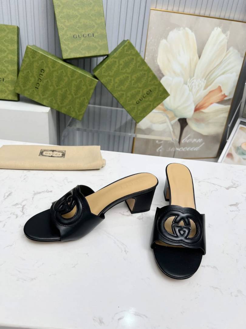 Gucci_GG_Cutout_Logo_Mid_Heel_Slide_Sandal_Black_Interlocking_G_With_OG_Box_&_Carry_Bag