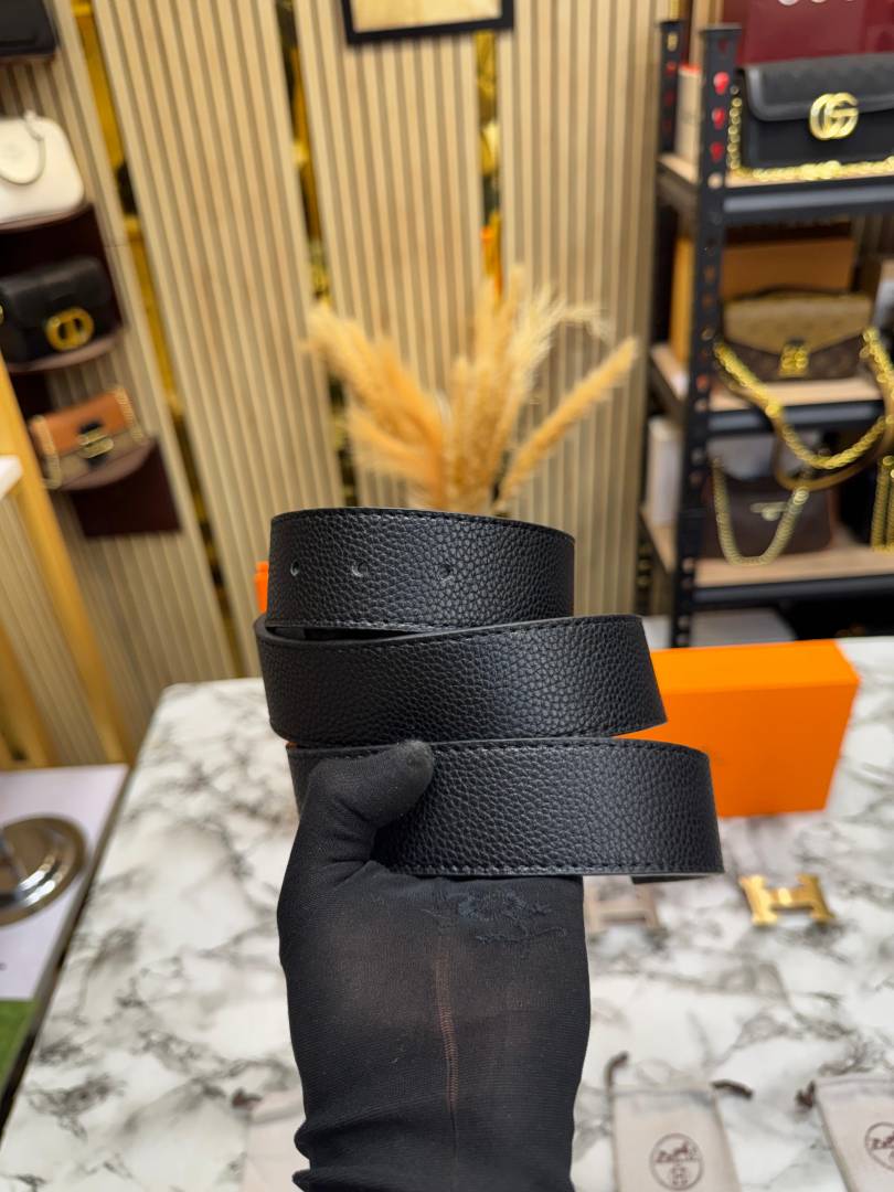 Hermes Black Leather Belt Combo H-Buckle Set Includes Box Dust Bags And Carry Bag (07-HS)