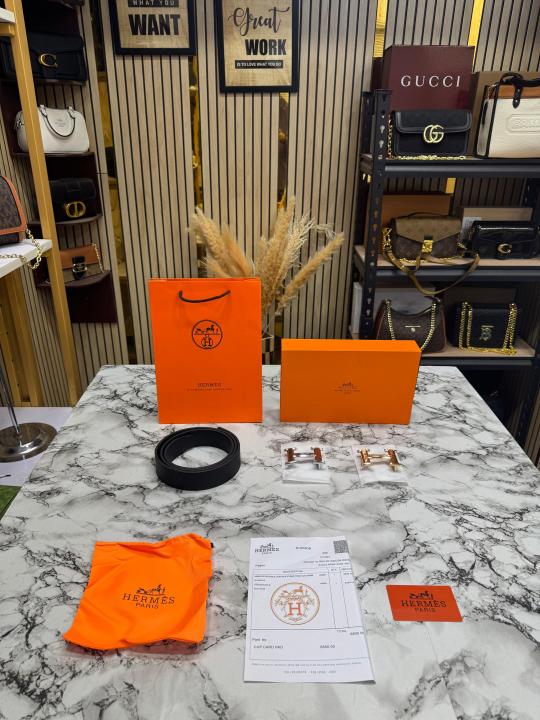 Hermes Black Leather Belt Combo H-Buckle Set Includes Box Dust Bags And Carry Bag (10-1)