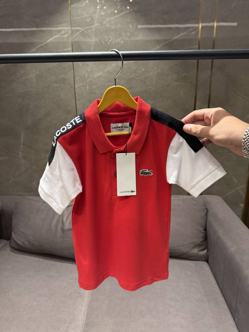 LACOST_E RED WHITE SIDE PREMIUM KIDS POLO