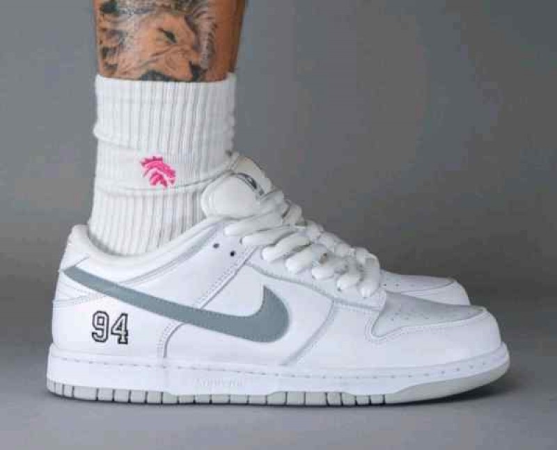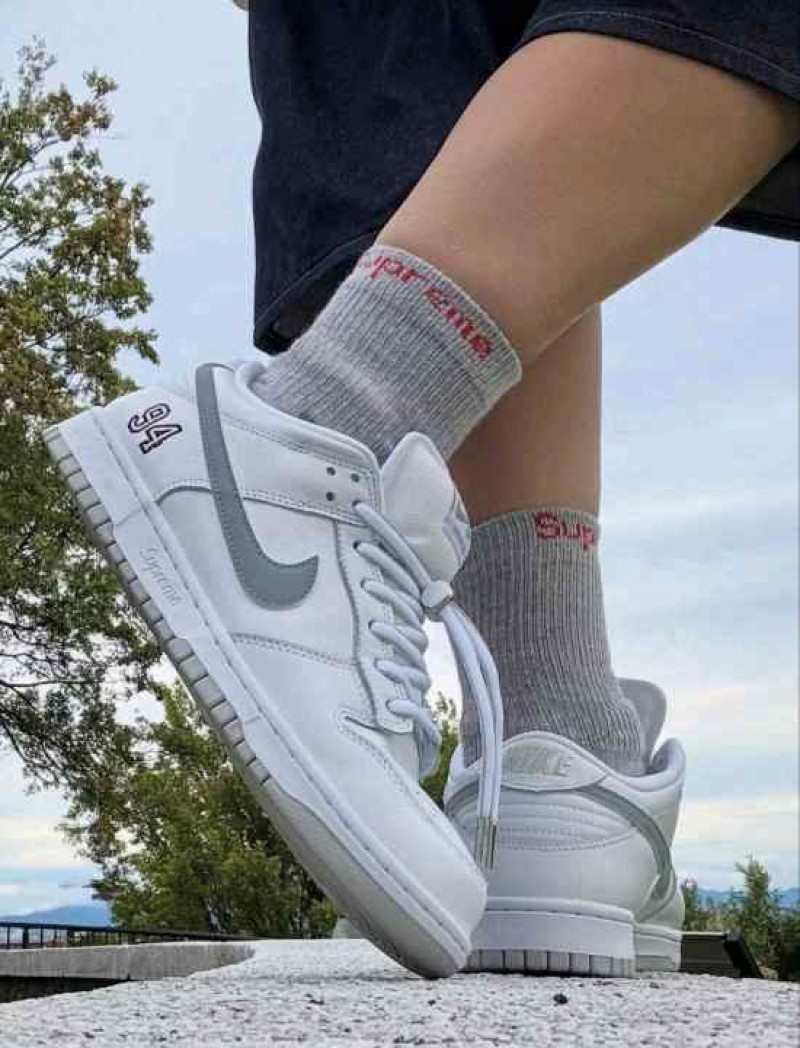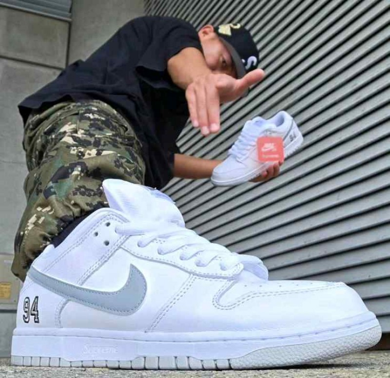 Supremee x Nikke SB Dunk Low WhiteMetallic Silver