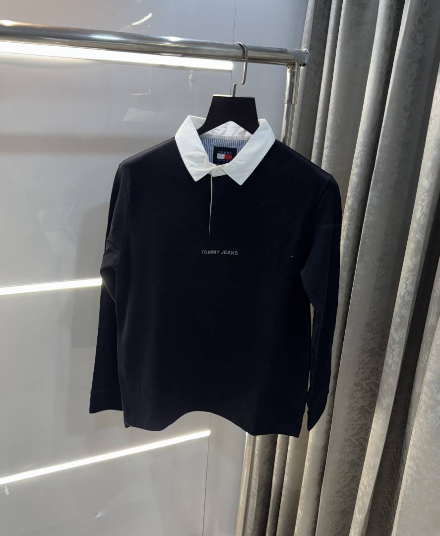 Tomm y Hilfiger Black Embroidery Logo Premium Full Sleeve Polo TShirt ST59C