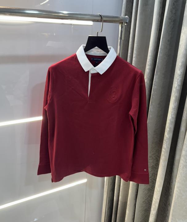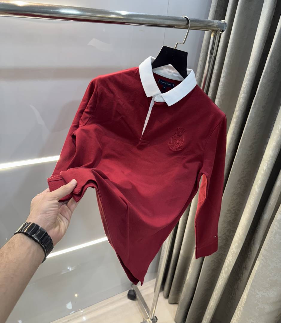 Tomm y Hilfiger Red Embroidery Logo Premium Full Sleeve Polo TShirt ST59C