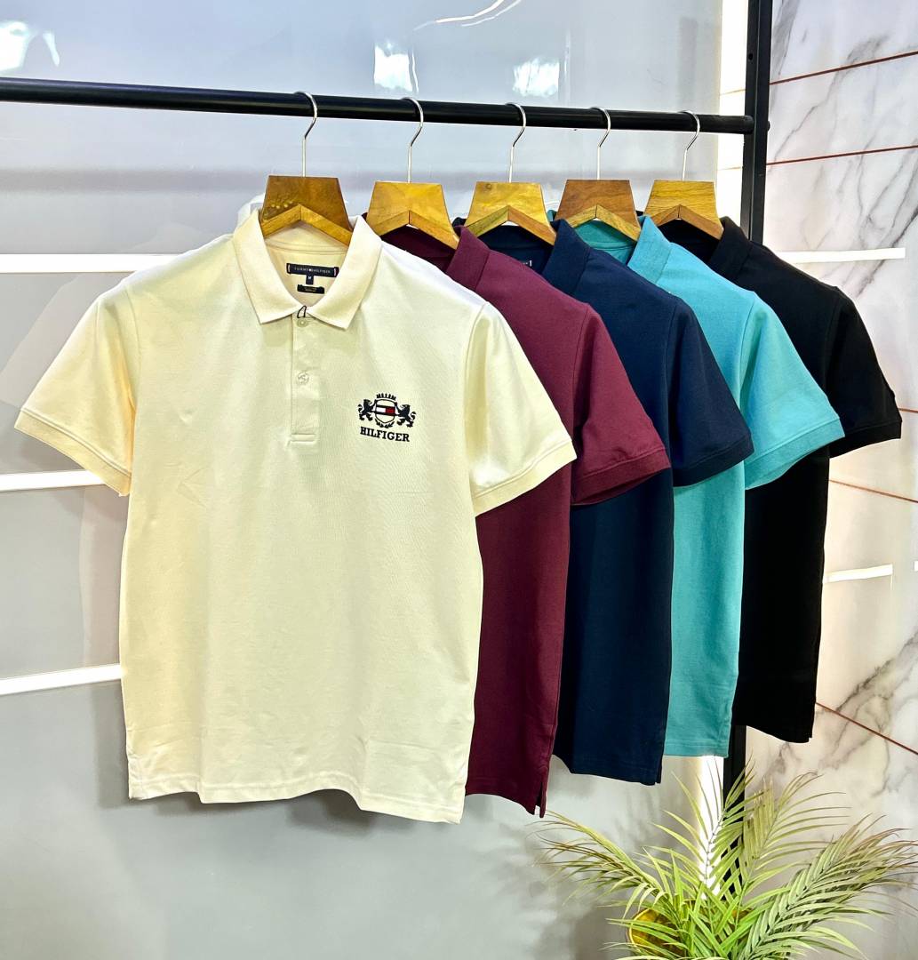 Hugo Bos s Black Premium Imported 240 GSM Interlock Lycra Fabric Polo Tshirt with Collar Design and Emboss Logo 3604