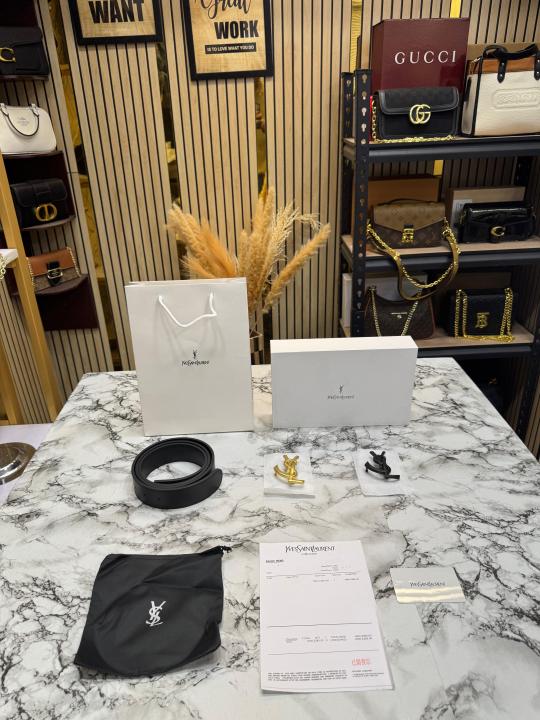 Yves Saint Laurent Black Leather Belt Combo With Box Dust Bag Includes Carry Bag (Ysl-22)